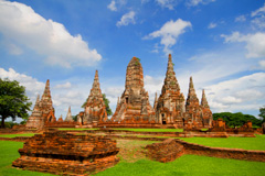 年中通して夏の季節しかないタイ。物価が安く買い物や、観光、リゾート気分を味わいに世界から観光客が集まる国でもあります。人口の90%以上は仏教徒といわれているタイには、多数のお寺があり、きらきら輝くお寺には毎度、多くの観光客が訪れます。観光都市も複数あり、北からチェンマイ、チェンライ、アユタヤ、バンコク、プーケット島などがあります。マッサージ天国とも言われ、タイ式マッサージ、フットマッサージ、アロマ、オイルマッサージ等、種類も豊富でお値段もお手頃です。