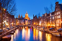 17世紀の 雰囲気を残した美しい運河の町、オランダを代表する国立博物館およびゴッホ美術館など見どころがたくさんのアムステルダムは、いつ訪れてもたくさんの観光客でにぎわっています。アムステルダムの街は中央駅を中心に扇形に広がり、内側のシンゲルから、外側のシンゲル運河まで、5本の運河が取り囲んでいます。