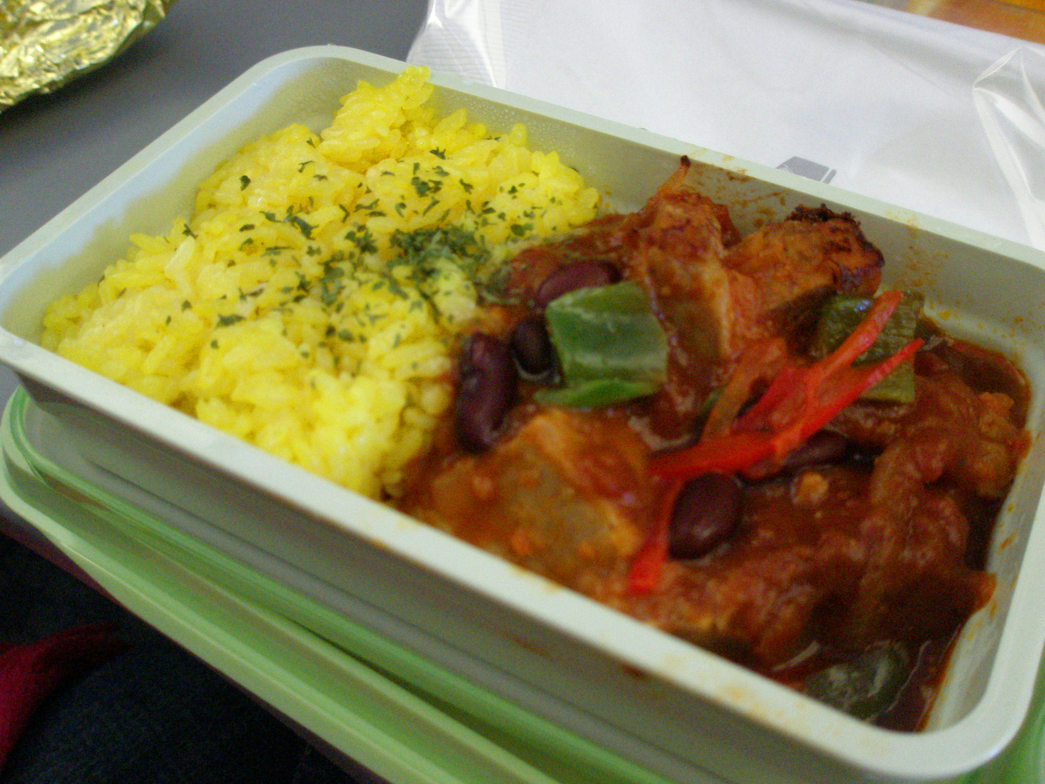成田から台北間のエバー航空の機内食です。エコノミクラスでは2色から選ぶことができます。この日は和食(鰻)か豚肉からのチョイスです。