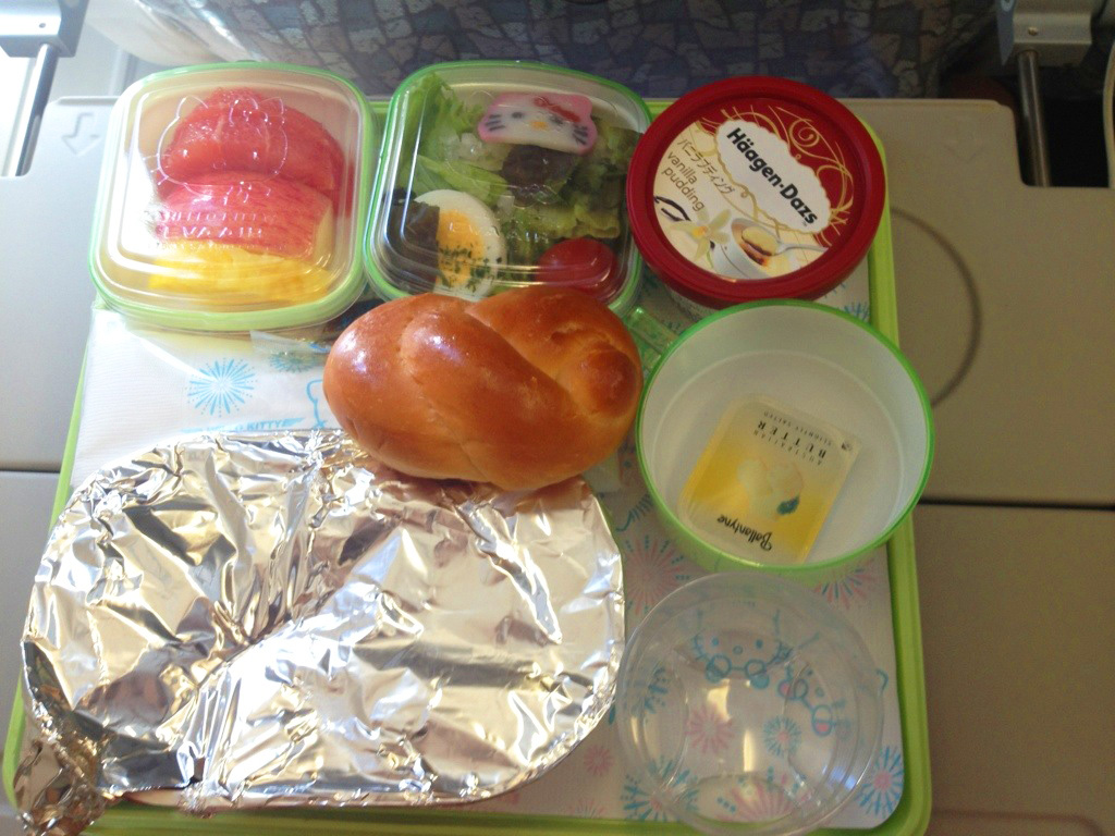 エバー航空は、キティーちゃんとコラボして「ハローキティジェット」を成田~台北間で運行しています。機内食もキティちゃんづくしです。