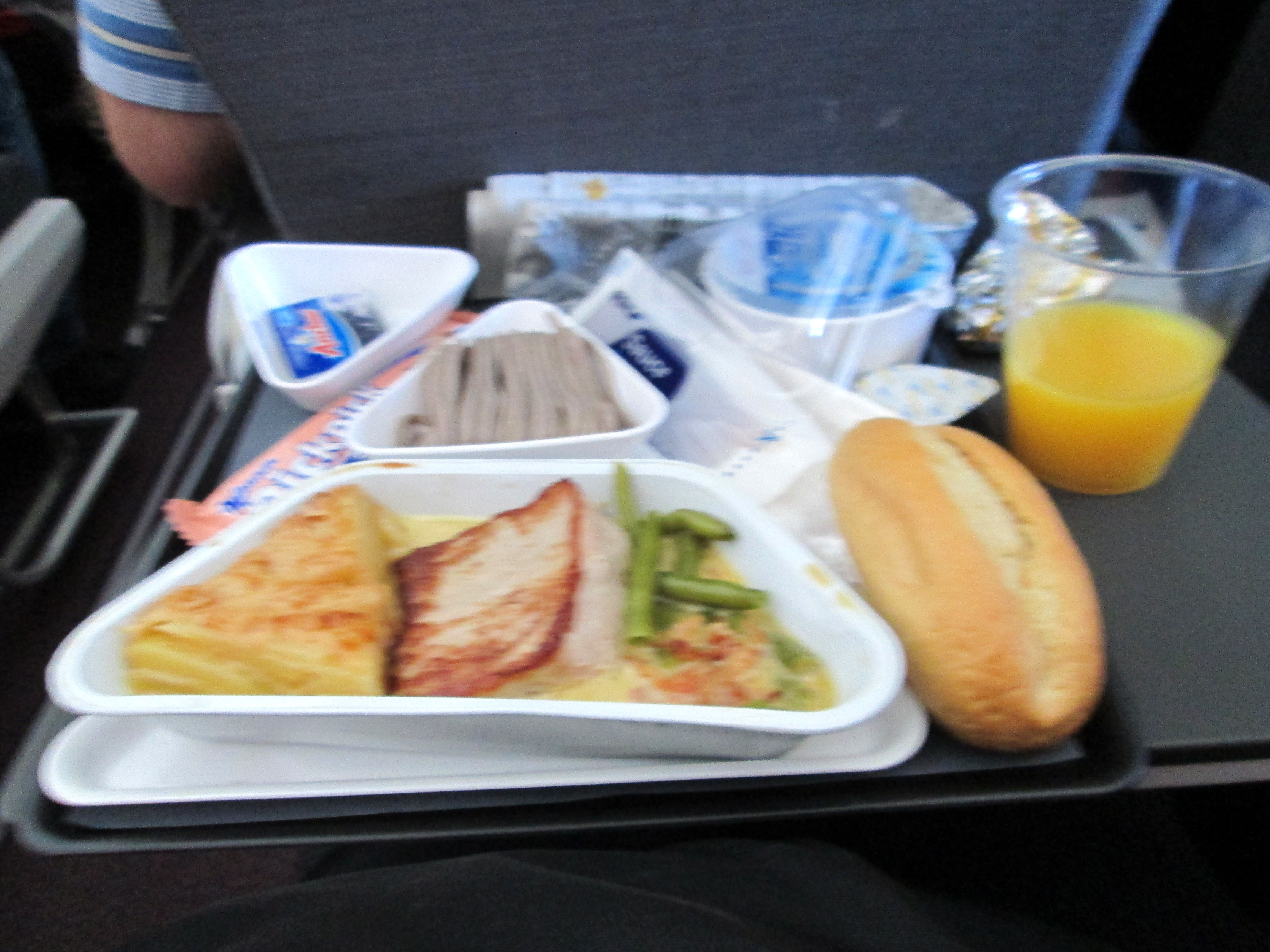 ポークも1かたまりで大きく、見た目上もよかった。エコノミーの機内食ではあまり食べたことのないような地上の食事のような味付けだった。こくはあったけれどもくどくはなかったです。機内食でおいしいと思ったことはこれまでありませんでしたが、メインの味付けはとてもよかったです。