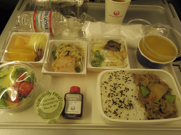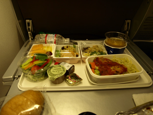 ロサンゼルスから成田間のエコノミークラスの機内食です。