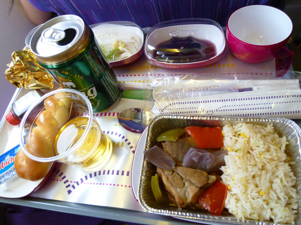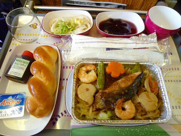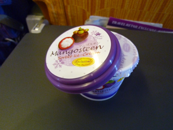 おやつは着陸1時間ほど前に。シャーベットは少し甘味が強かったですが、甘酸っぱくておいしかったです。