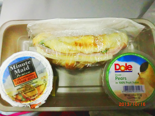 パイナップルのカットデザートは、フタを開けるとシロップの中にカットフルーツが浮いているタイプ。