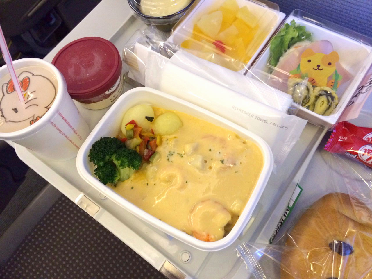 チャイルドミールだけあって、子供が喜びそうな彩りとなっていました。早朝便で既に朝食を食べていたにもかかわらず、グラタンを美味しそうに食べていました。ハーゲンダッツのアイスは大人と一緒のキャラメル味だったため、子供には苦くて食べられなかったようです。