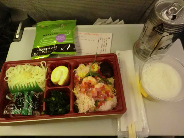 チャーター便のパラオ線、復路の機内食は、グアム線同様の空弁でした。写真にはありませんが、希望すれば味噌汁も入れてくれます。