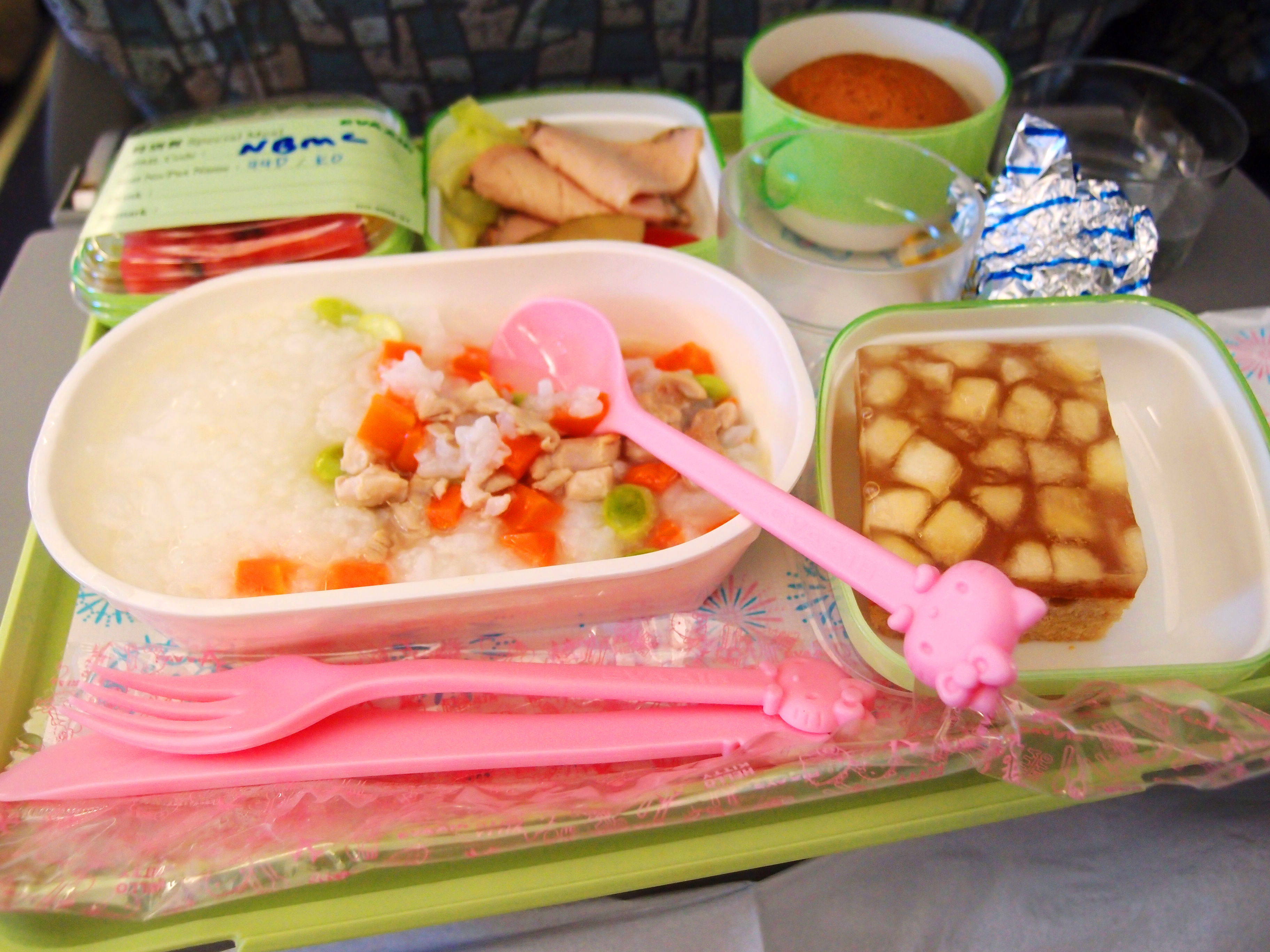 エバー航空、成田から台北への機内食です。写真の機内食は、宗教などを理由に牛肉を食べられない、牛肉抜きのリクエストをした特別機内食です。