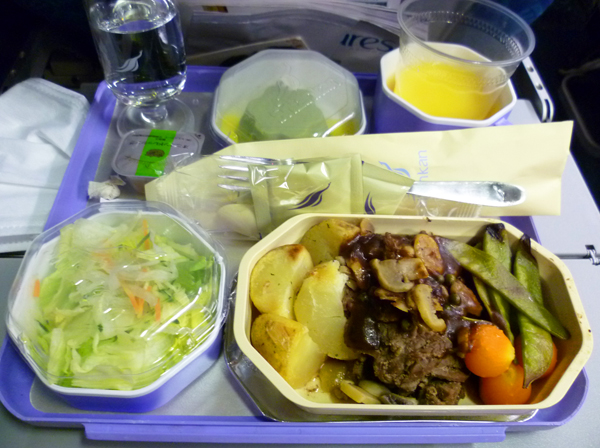 成田からスリランカのエコノミークラスの機内食です。スリランカ航空は途中燃料補給のためマーレ燃料補給をします。