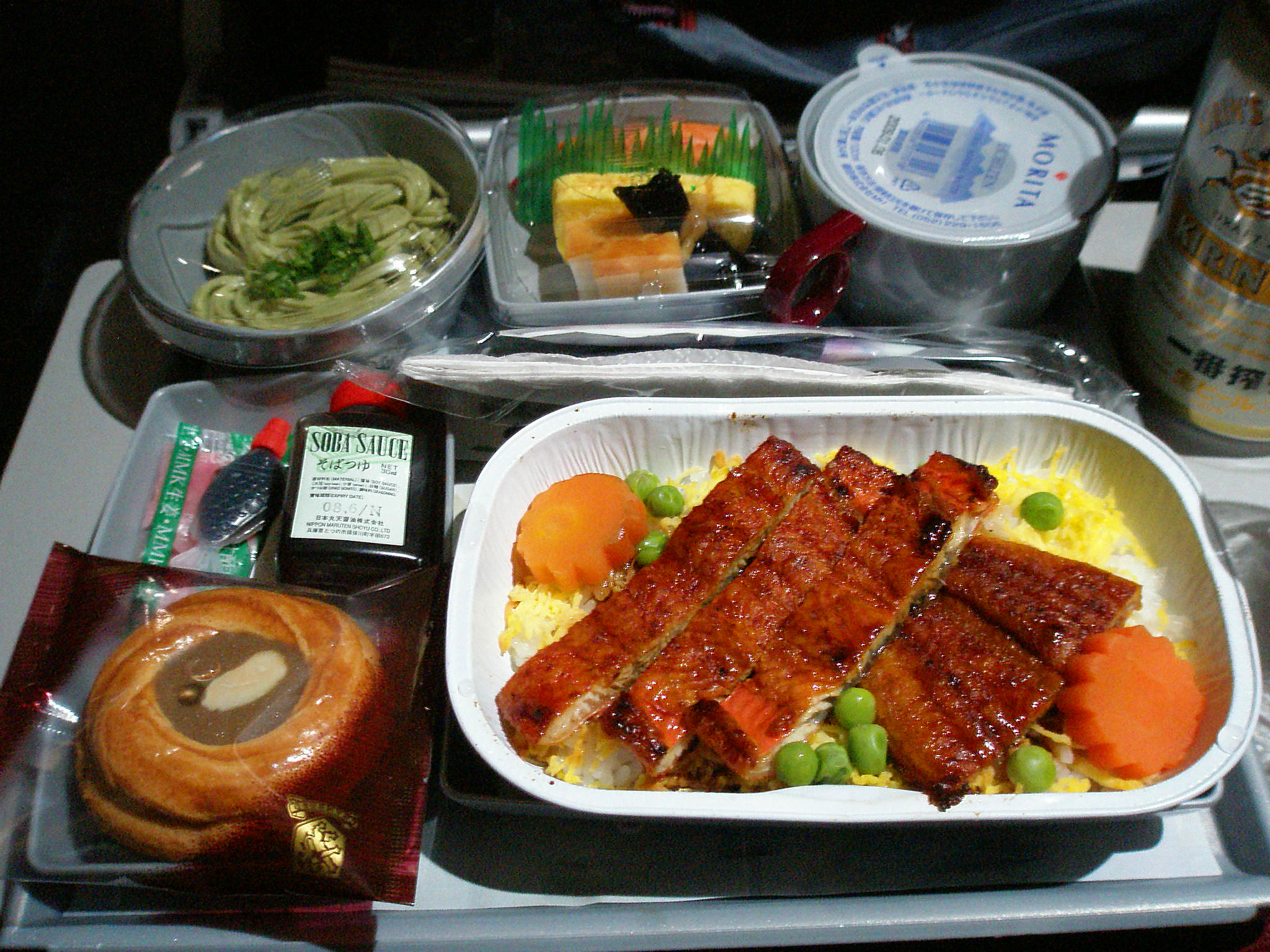エコノミークラスの機内食で鰻が食べれるとは思ってませんでした。ご飯も鰻も大きくとても美味しかったです。