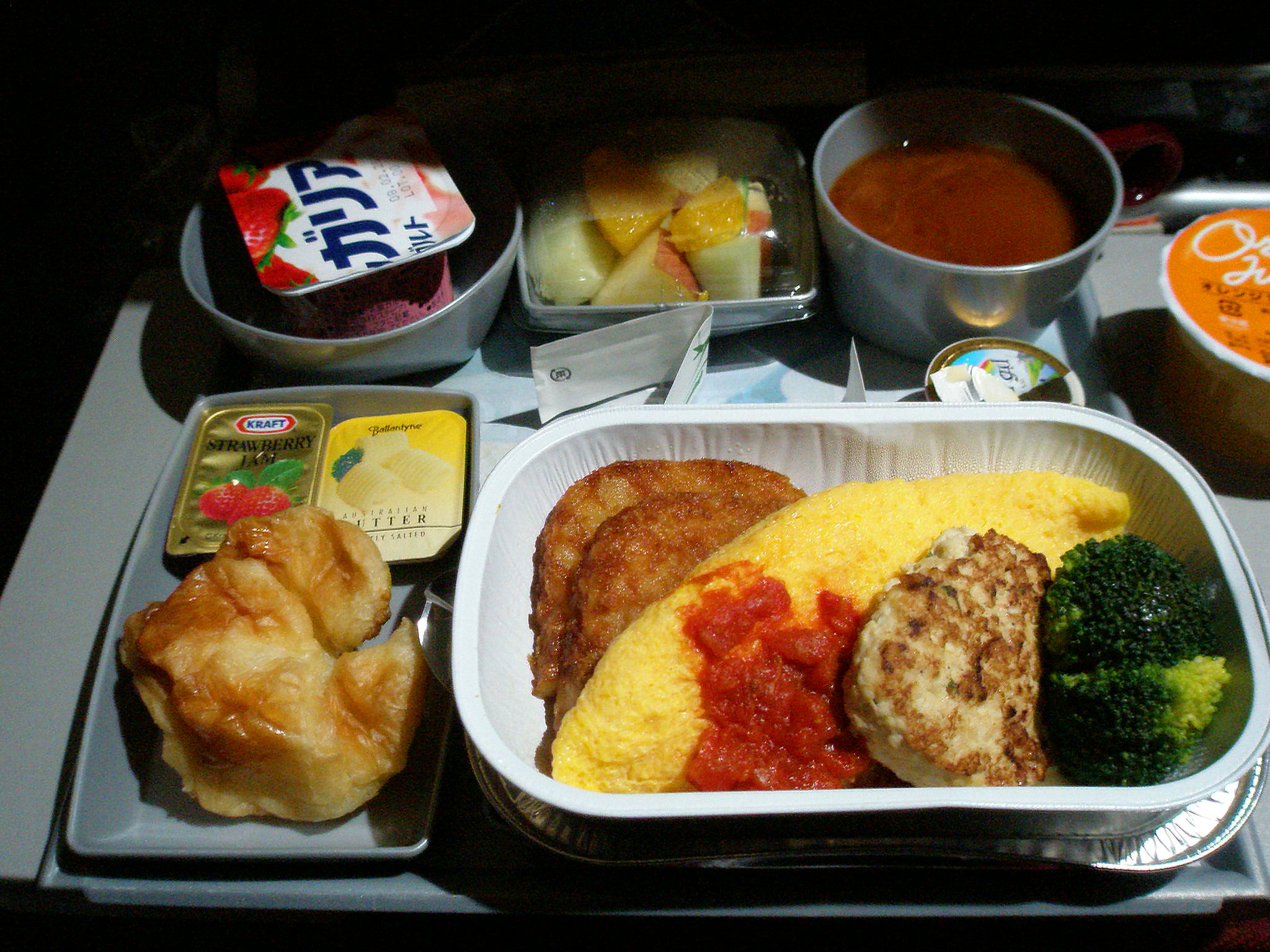 2回目の機内食は到着前に提供されますが、こちらはどちらの食事も味、ボリュームともに満足です。2回目は鰻かオムレツとハンバーグから選べます。