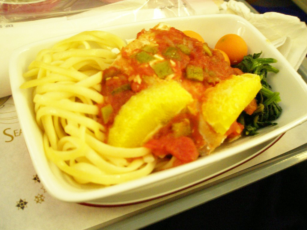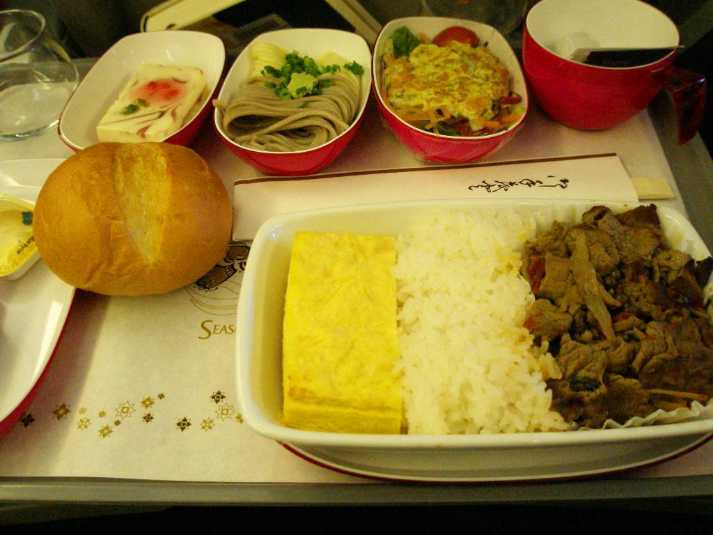 現在、タイ国際航空の機内食では。出発の48時間前までに連絡すれば和食のリクエストにも対応してくれるそうです。